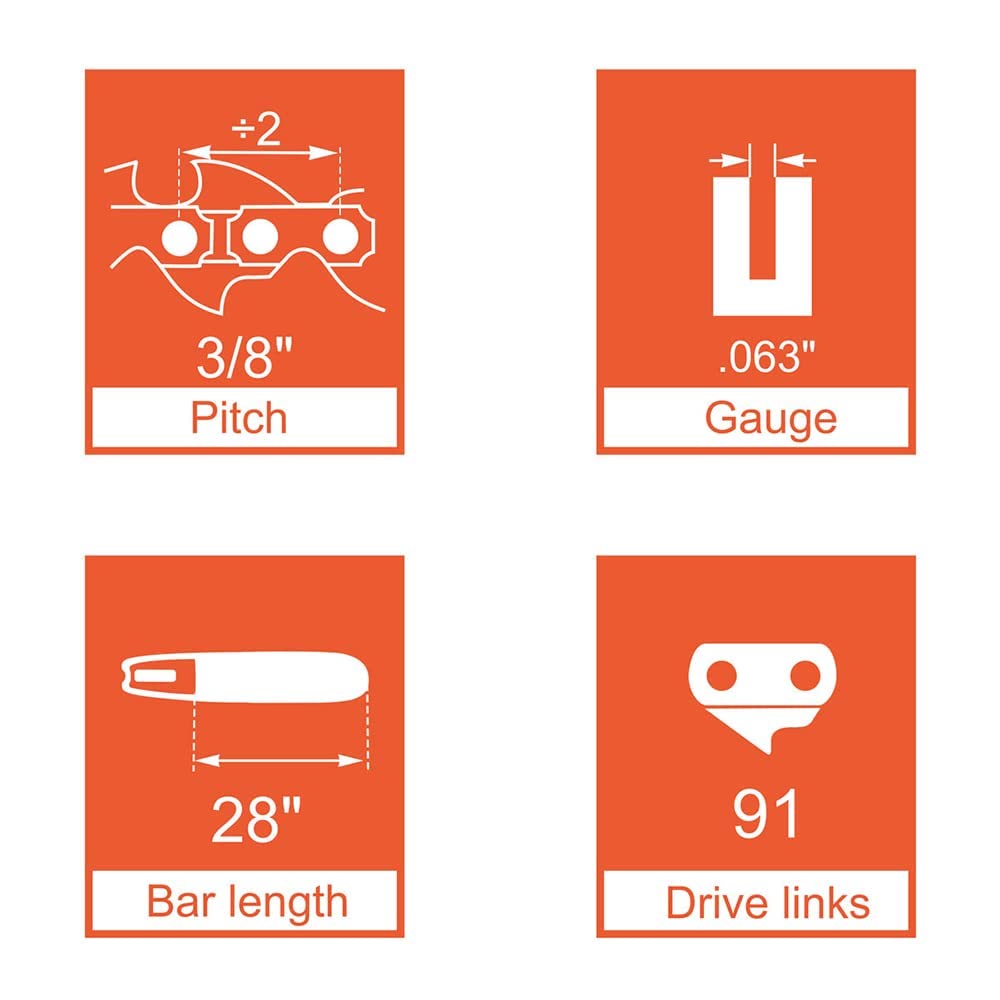 Hipa 28 Inch Full Skip Chain 3/8 Picth .063 Gauge 91 DL For Stihl MS660 MS661 MS461 MS460 MS440 MS391 MS390 Magnum 038 044 046 Chainsaw