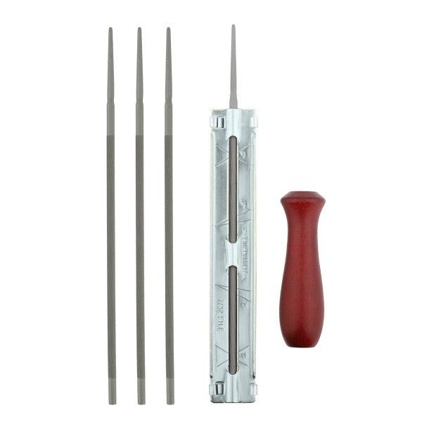 Chainsaw files won't last forever; they get dull as you use them. With files being cheap, it's a good idea to buy a few boxes (3-12 files)?at a time, so you'll always have a new file ready to go.