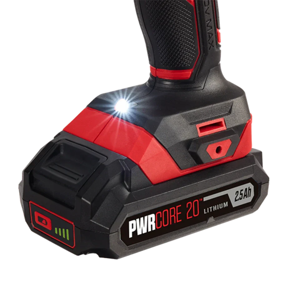 - Everything You Need To Get Started —This Cordless drill set includes a PWRCORE 20™ 2.0Ah Lithium Battery and 20V Charger