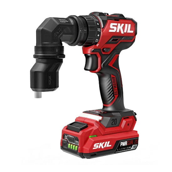 Easily access hard-to-reach areas like tight cabinet corners and edges with the SKIL Brushless 20V Compact Multi-Head Drill Driver. Four interchangeable attachments deliver outstanding versatility with a 3/8-inch keyless chuck attachment, locking 1/4-inch hex attachment, right angle attachment for 90-degree drilling and fastening, and offset attachment for tight corners and edges. The cordless multi-head drill driver features a digital brushless motor that delivers up to 450 inch-pounds of torque packed into a compact and lightweight design for working in hard-to-reach areas with less fatigue. A strip LED worklight provides bright, broad illumination and lights up your workspace for up to 10 minutes. The variable speed trigger delivers precise speed control. Charge the battery or personal devices with the battery’s 100W USB-C port. When it’s time to recharge the battery, the multifunctional charger ditches the traditional power tool charging dock for a compact, convenient format that can plug in anywhere and fully charge the 2.0Ah battery in 55 minutes. The cordless drill driver kit includes the multi-head drill driver, 3/8-inch keyless chuck attachment, locking hex bit holder attachment, right angle attachment, offset attachment, 2.0Ah USB-C battery, 45W USB-C PD charger, USB-C charging cable, belt clip, bit, and bag.