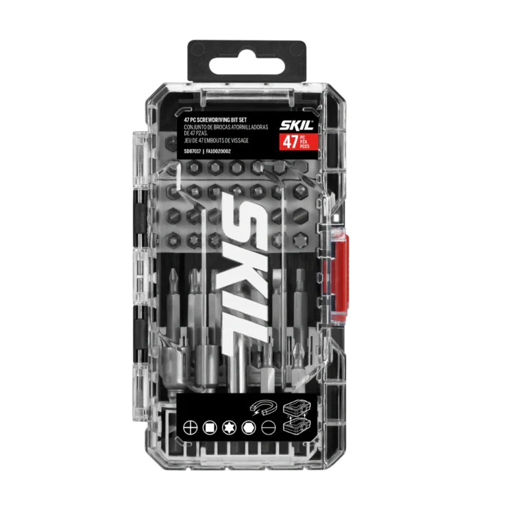 The SKIL 47-Piece Screwdriving Bit Set delivers an assortment of the most commonly used screw driving bits for a variety of projects that require driving bits into wood, plastic, and metal. The bit kit includes 35 1-inch bits, 9 2-inch bits, two 1-7/8-inch nut setters, and a 2-3/8-inch magnetic extension bit holder for extra reach. Removable inserts allow you to customize your bit organization within the case. The screwdriver bit set comes in an interlocking case featuring a clear lid for easy bit identification, easy screwdriver bit removal, and compatibility with other SKIL accessory cases for custom configurations.